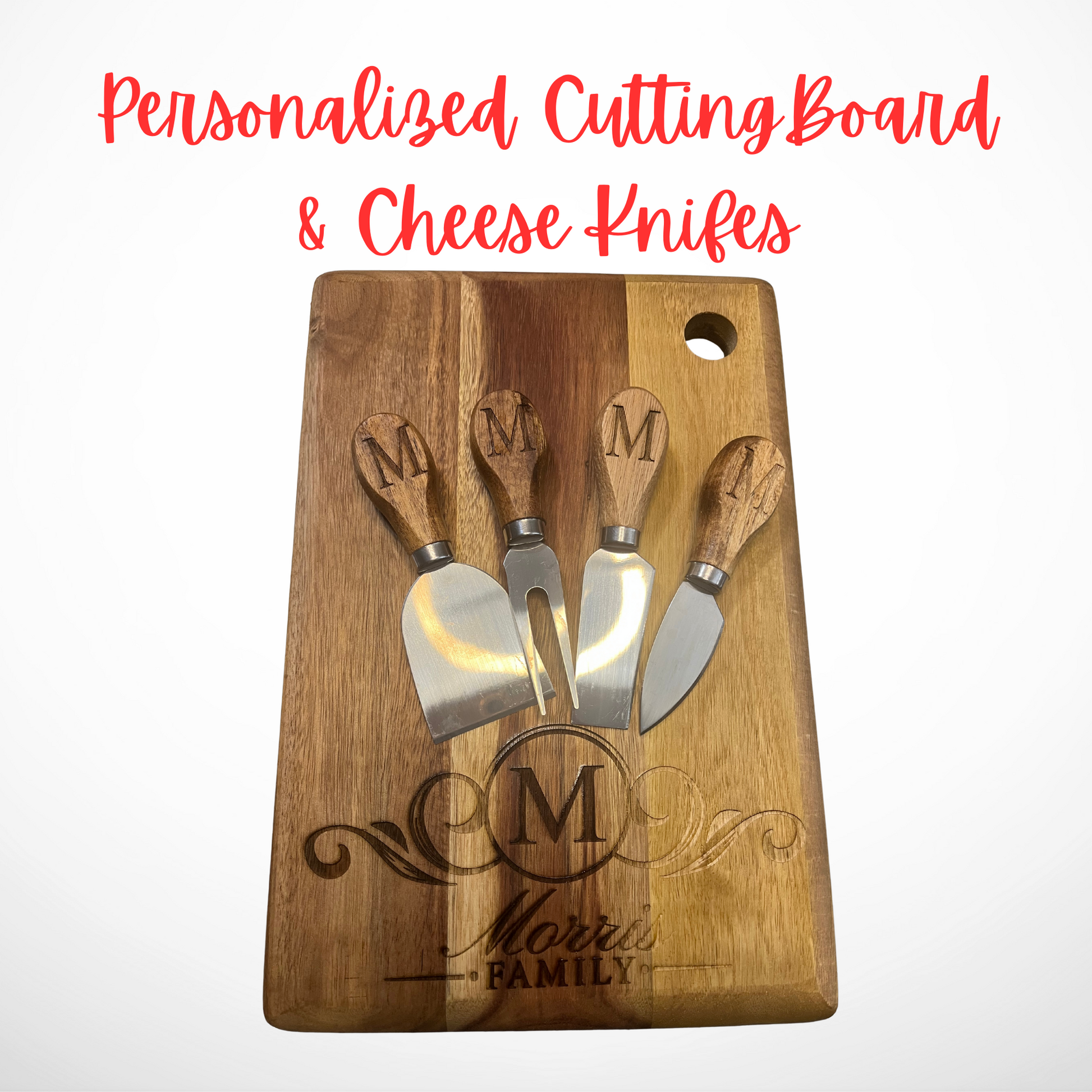 Sizes Available: 12x8, 15x9 & 12x12 Material: Natural wood Finish: Unique grain patterns — no two boards engrave the same Care: Hand wash only; oil occasionally to maintain richness 🎁 Perfect Gift For Weddings • Anniversaries • Housewarmings • Hostess gifts • Realtors • Holiday gifts ❤️ How to Personalize Enter the name, monogram letter in Customization Details at checkout We will provide a proof. Once approved we will complete the order